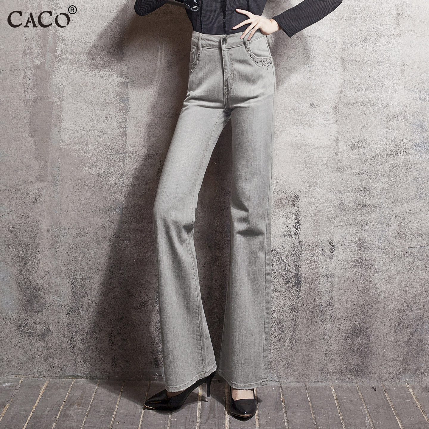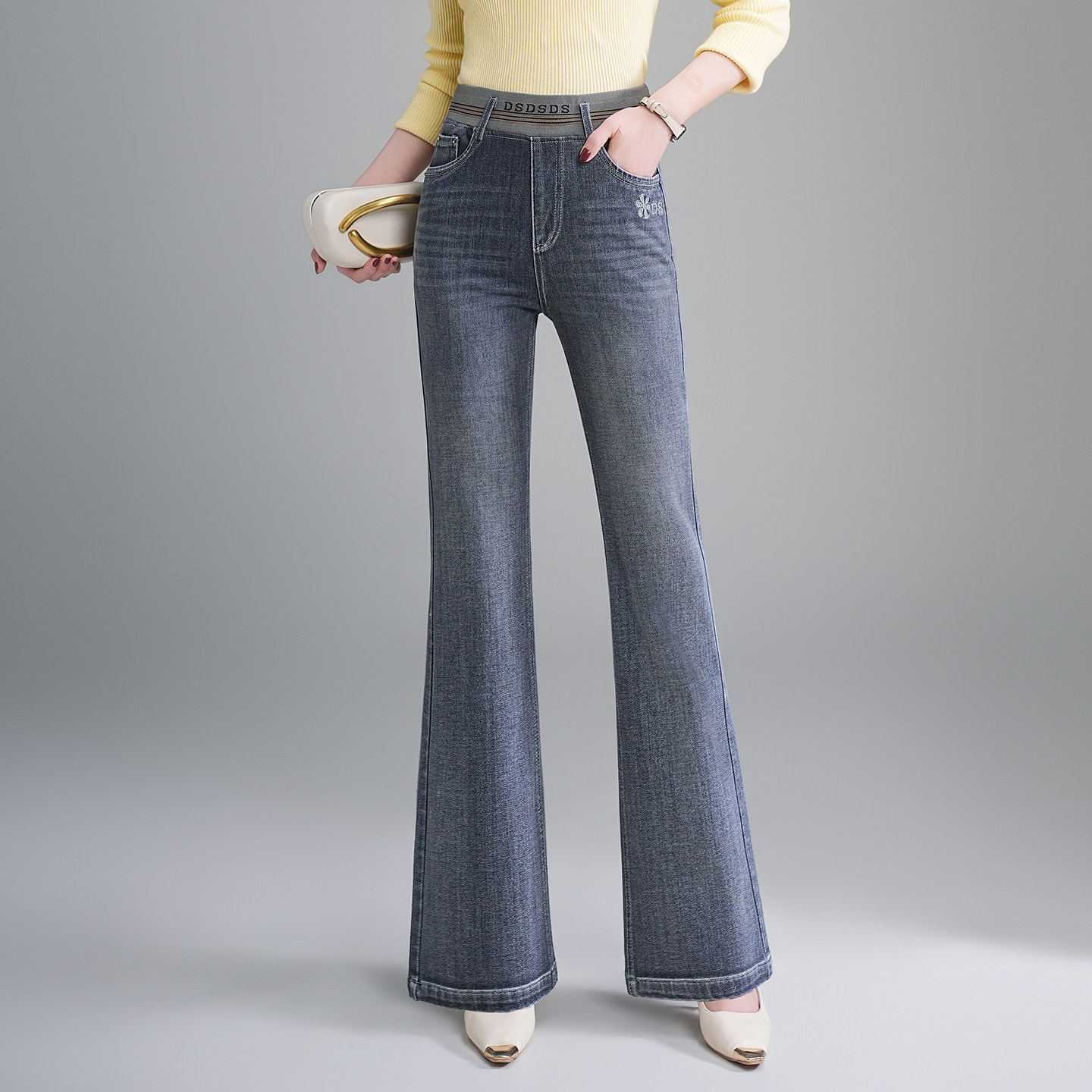 - 牛仔裤微喇叭款女长裤