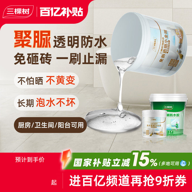 三棵树聚脲透明防水胶室内外裂缝卫生间专用涂料免砸砖材料渗透剂
