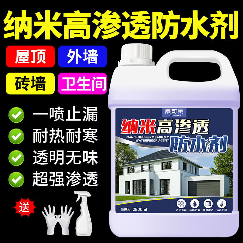 纳米防水剂胶渗透型免砸砖卫生间屋顶外墙补漏材料堵漏王防水涂料