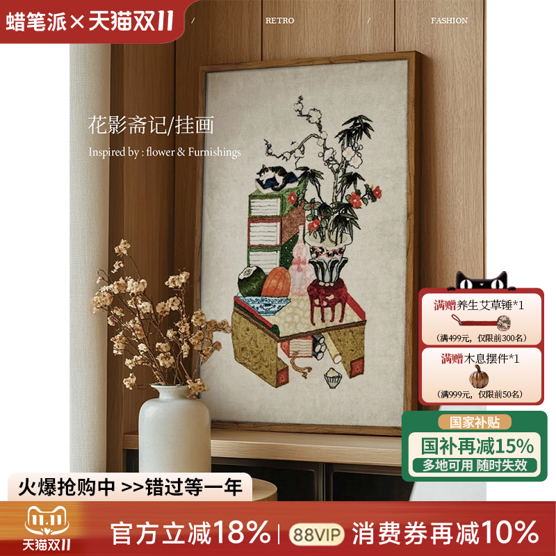 【国补再减15%】蜡笔派花影斋记挂毯画新中式装饰画客厅玄关挂画