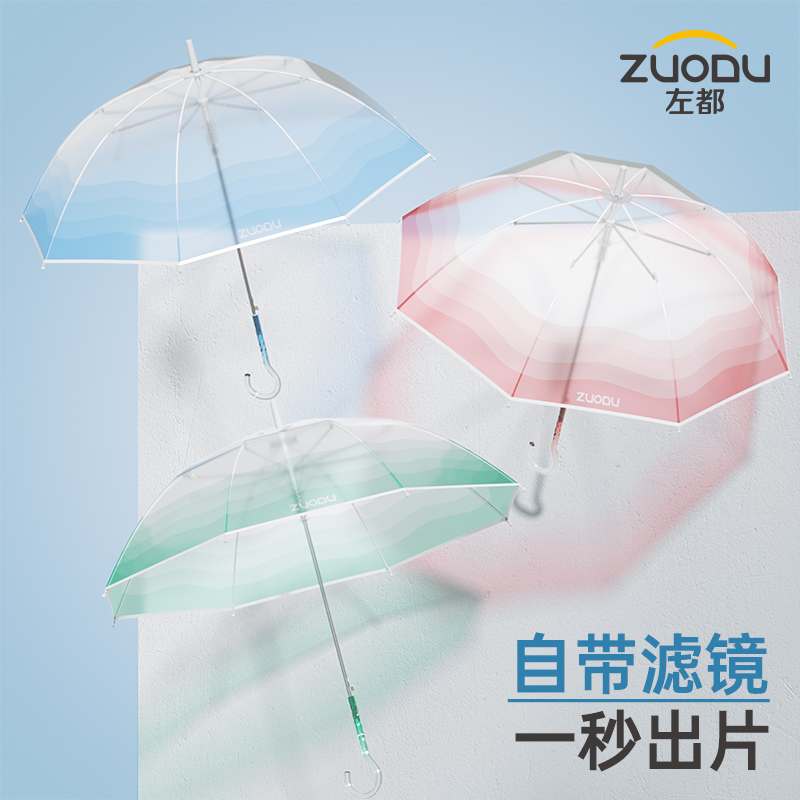 小清新16骨透明雨伞男女自动长柄伞明星网红学生透明伞定制广告伞