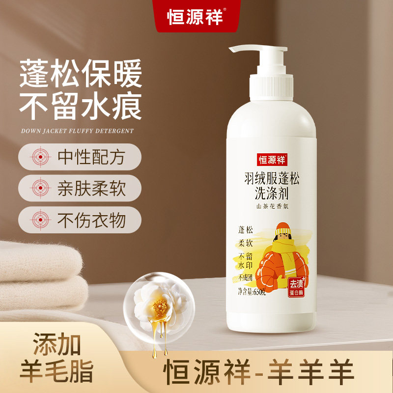 恒源祥官方羽绒服蓬松洗涤剂洗衣机专用中性洗衣液去油清洗剂神器