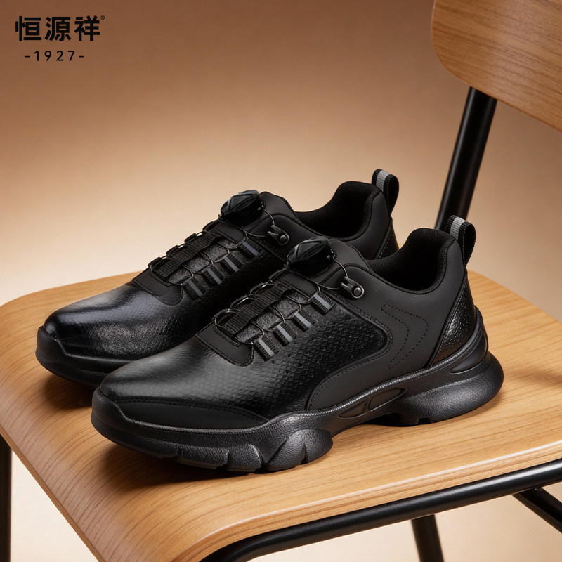 恒源祥男鞋官方正品秋冬新款黑色休闲鞋男士真皮通勤商务运动鞋子