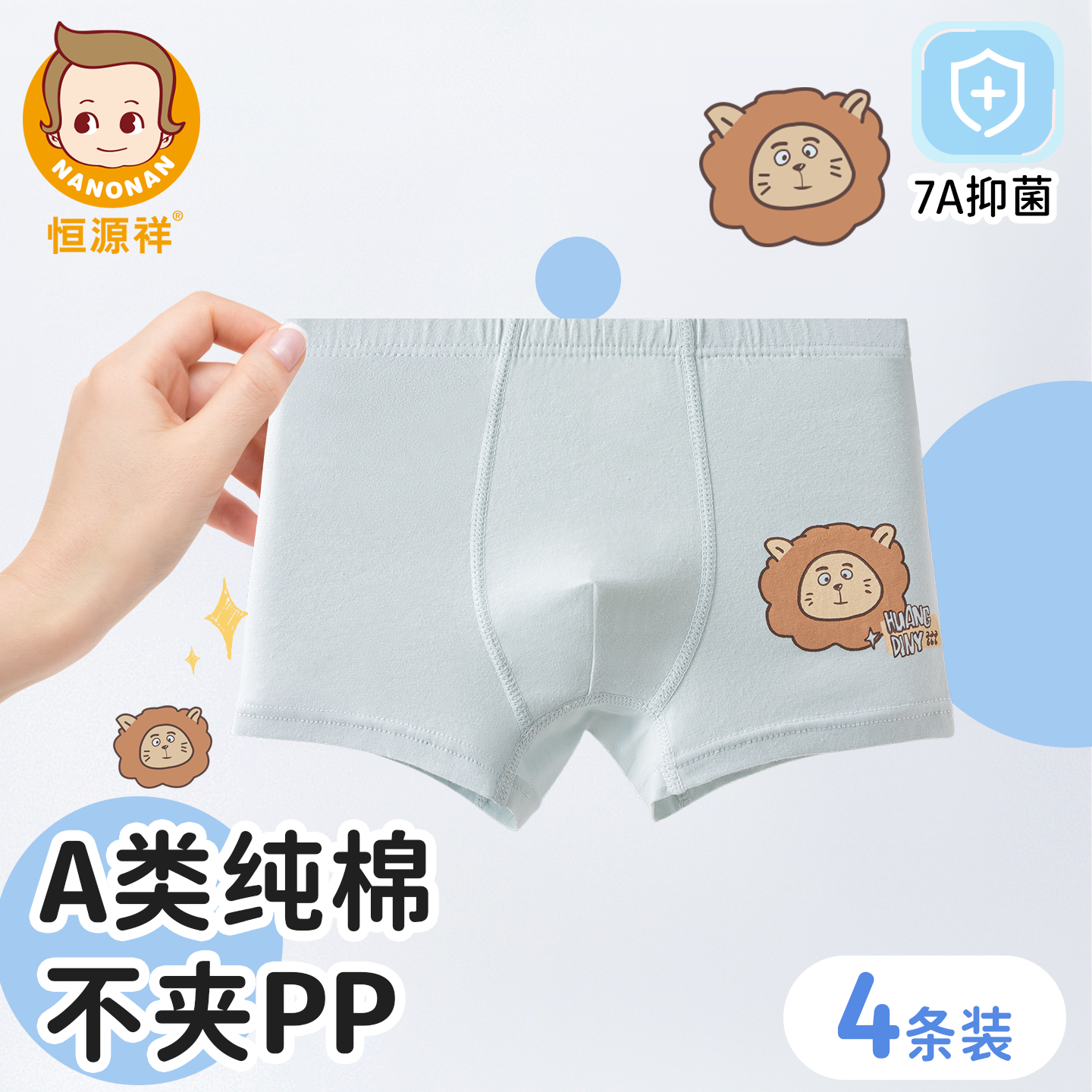 恒源祥儿童内裤男童纯棉官方旗舰店a类抗菌四角短裤小女孩平角裤
