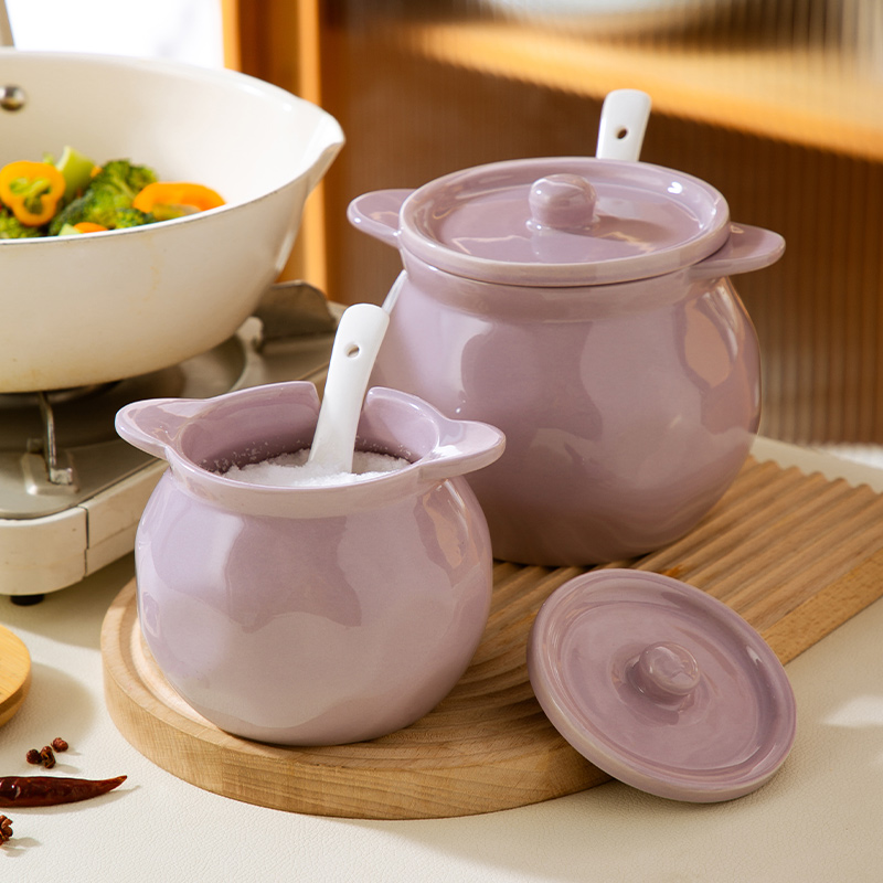 盐罐陶瓷罐调料罐家用厨房老式防潮带盖猪油罐耐高温勺子辣椒油罐