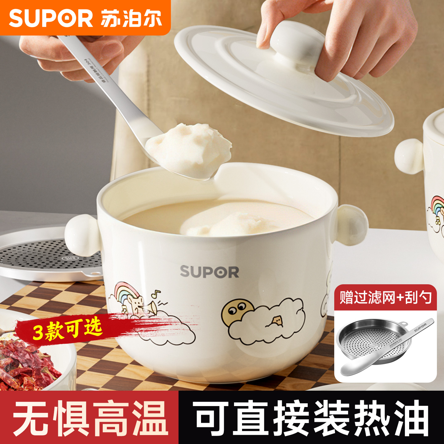 陶瓷猪油罐家用厨房耐高温带盖勺子不锈钢过滤网调料辣椒油大容量