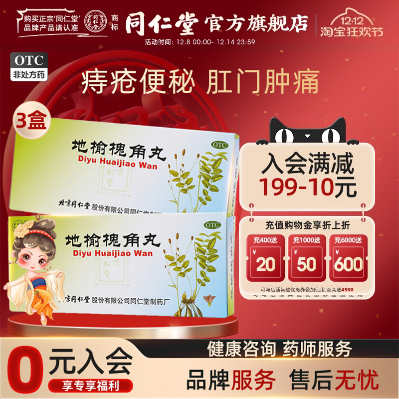 3盒)北京同仁堂地榆槐角丸痔疮湿热便秘肛门肿痛中药正品旗舰店