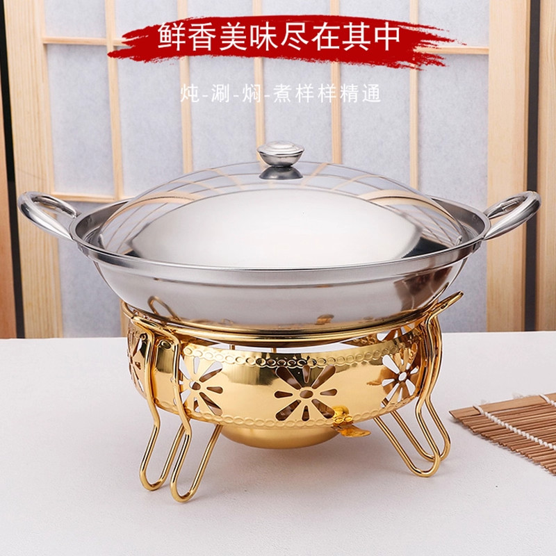 不锈钢酒精炉火锅家用干锅锅具固体酒精锅商用饭店金色平底干锅炉