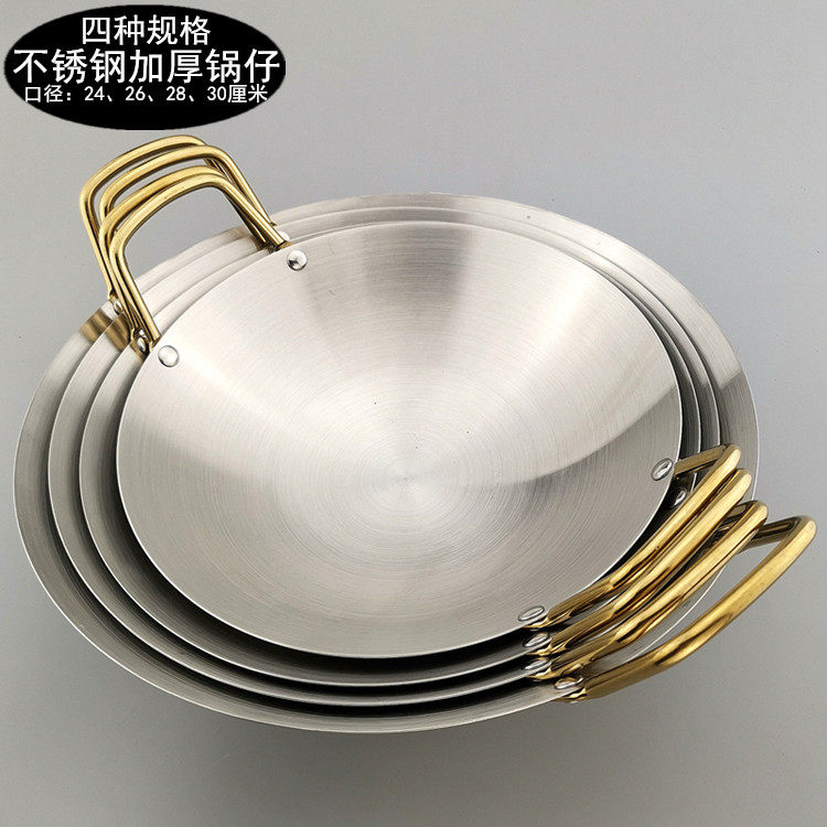 不锈钢干锅圆底平底锅仔酒精炉锅家用饭店宿舍商用酒精锅仔小火锅