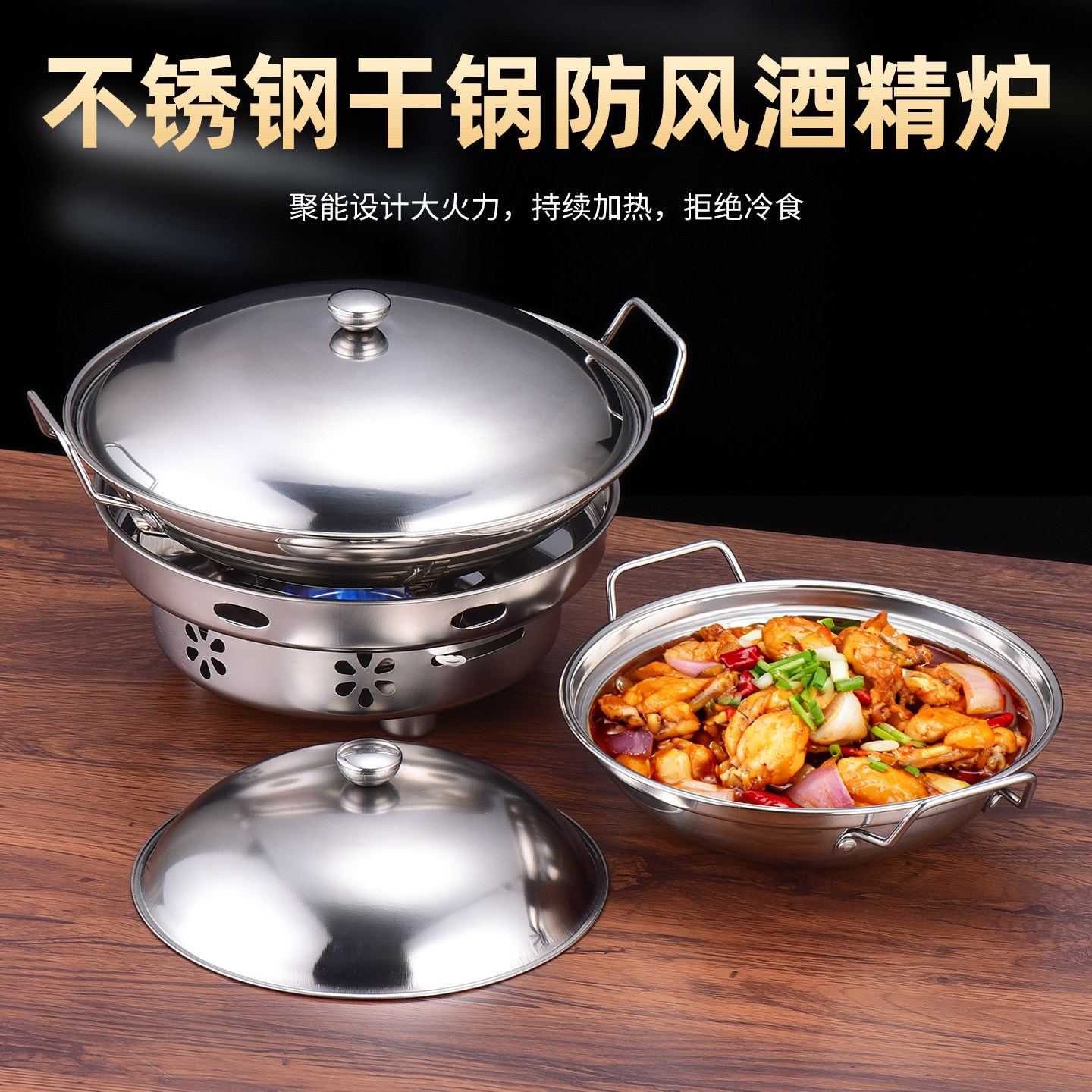 防风酒精炉小火锅家用饭店商用不锈钢干锅学生宿舍酒精锅户外便携