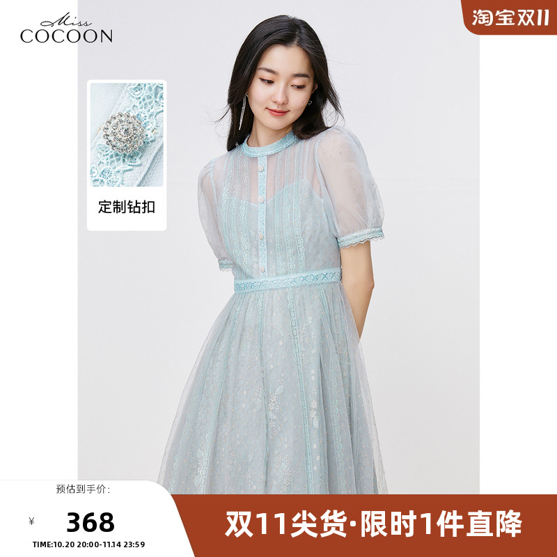 miss COCOON烫金气质网纱裙2025夏新款女优雅刺绣蕾丝网纱连衣裙