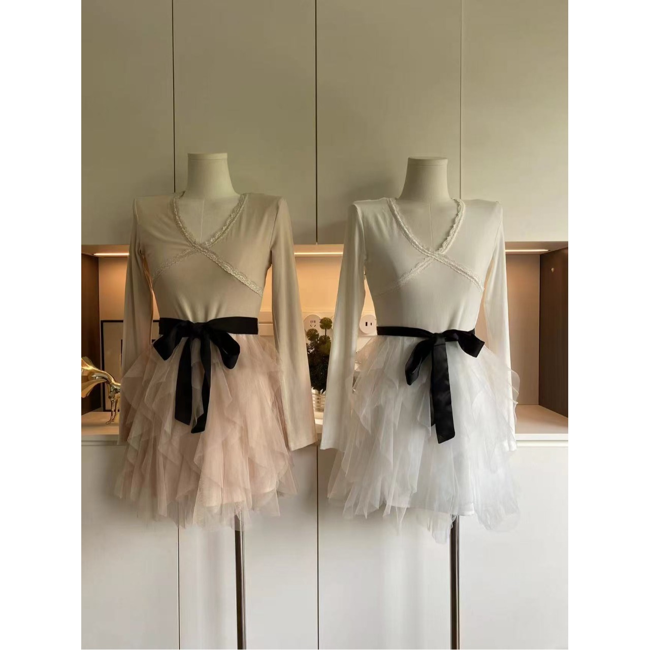 越韩小鱼 纱与芭蕾长袖版 法式重工在逃公主裙蕾丝网纱蓬蓬连衣裙