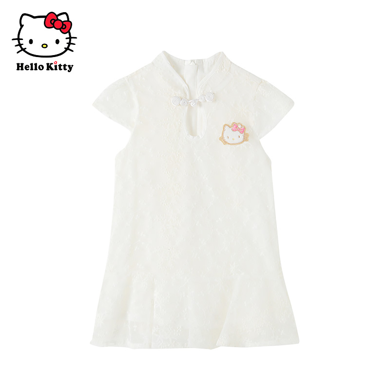 Hello Kitty童装女童春中国风旗袍短袖蕾丝网纱连衣裙裙子
