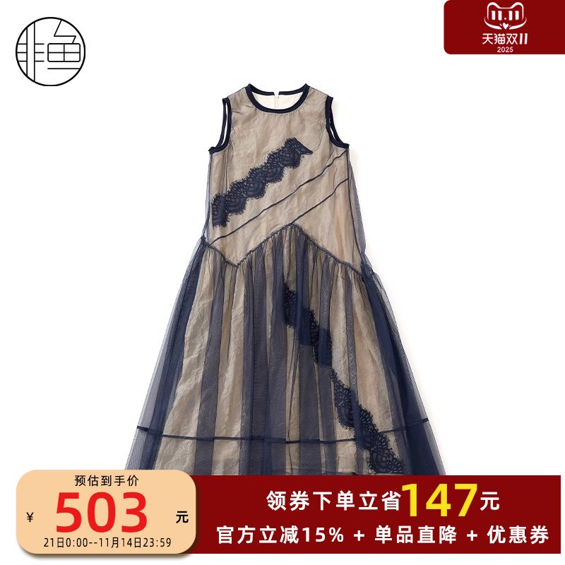 非鱼2025夏季新款蕾丝网纱连衣裙气质优雅无袖连衣裙NFLXL1285