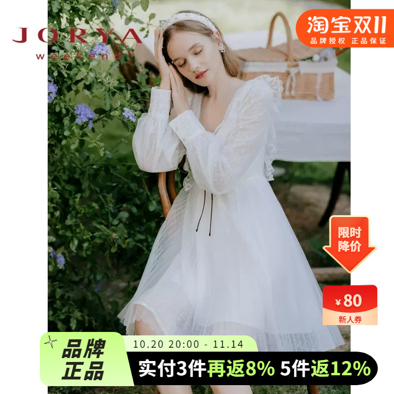 安妮公主系列|卓雅周末春季新款方领蝴蝶结荷叶边蕾丝网纱连衣裙