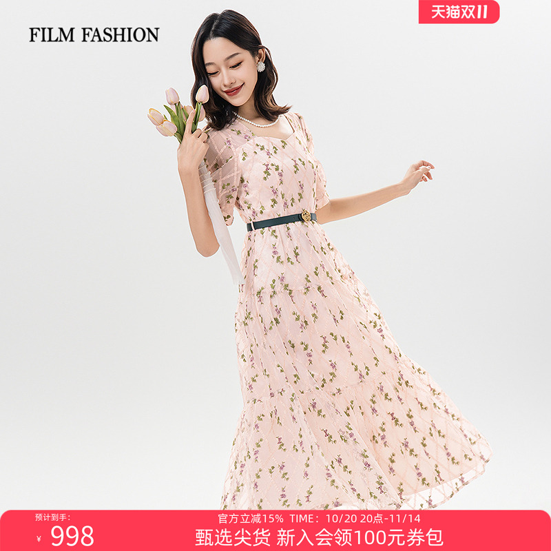一电影一时装夏季法式度假风短袖蕾丝网纱连衣裙显瘦裙子气质女士
