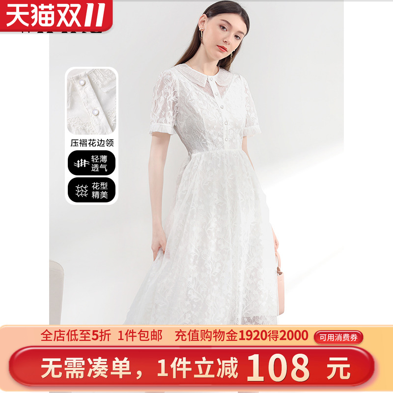 未风蕾丝网纱连衣裙女夏2025年夏季新款女装气质淑女高腰小白裙子