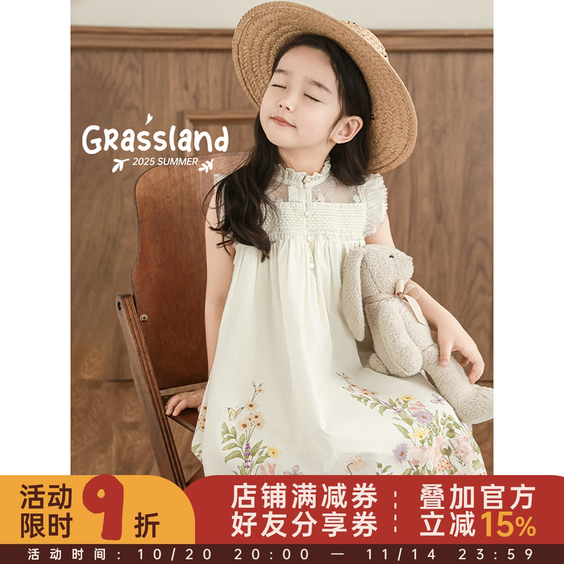 女童公主裙夏装2025新款洋气小女孩吊带碎花裙儿童蕾丝网纱连衣裙