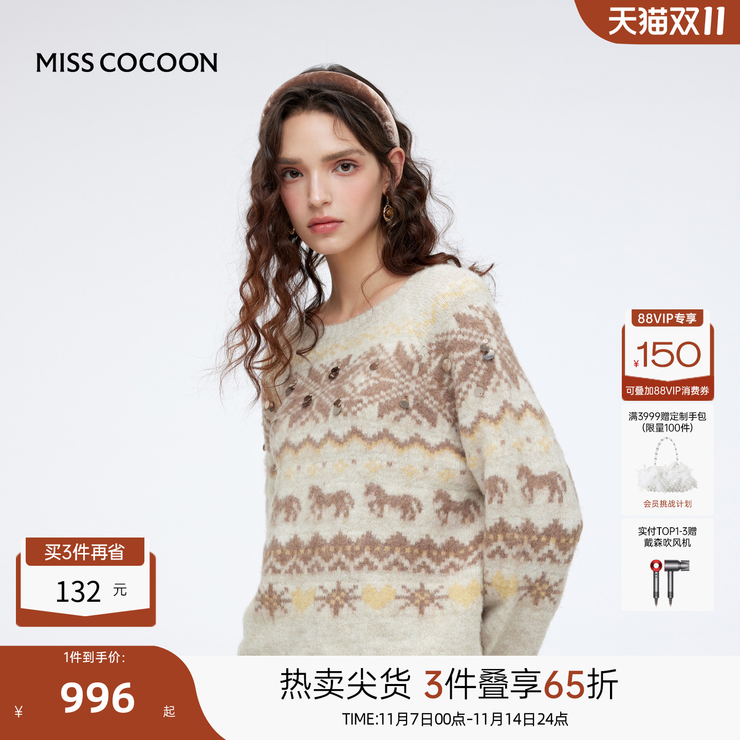 - 镶钻羊绒衫女