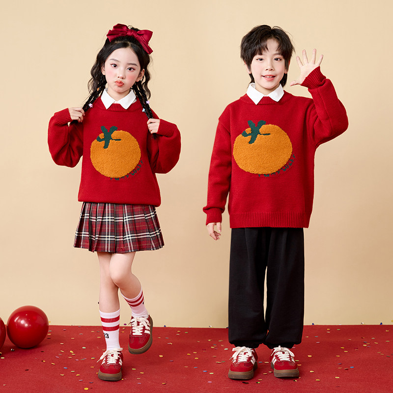 元旦儿童演出服合唱服表演服喜庆幼儿园小学生毛衣朗诵比赛啦啦队
