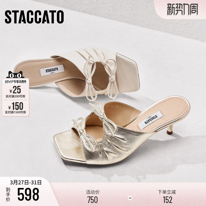 思加图新款奶油鞋法式复古细高跟方头凉拖鞋女鞋EBQ25BT5