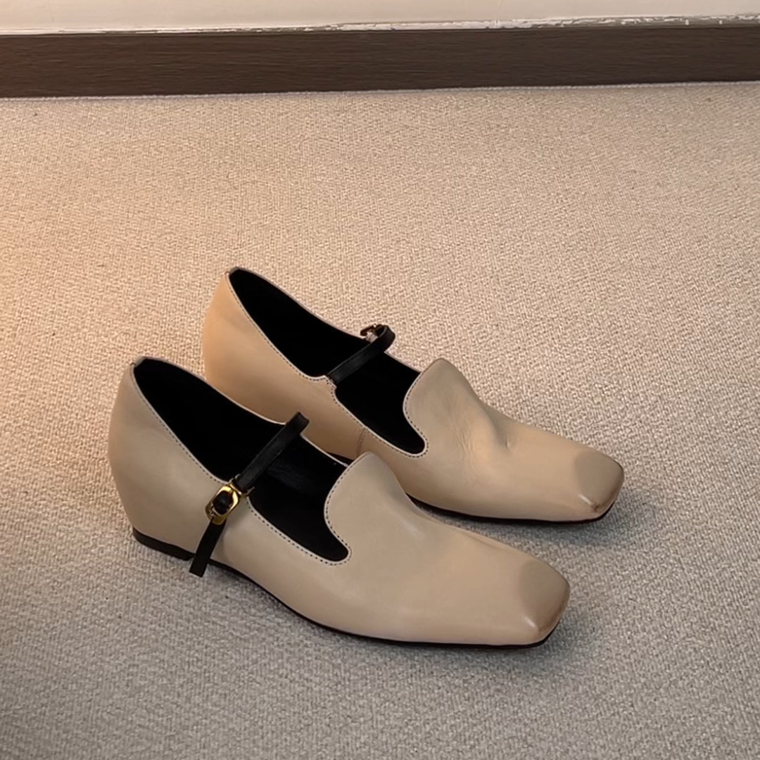 牛皮版~法式复古方头玛丽珍鞋女2025新款一字扣带内增高浅口单鞋