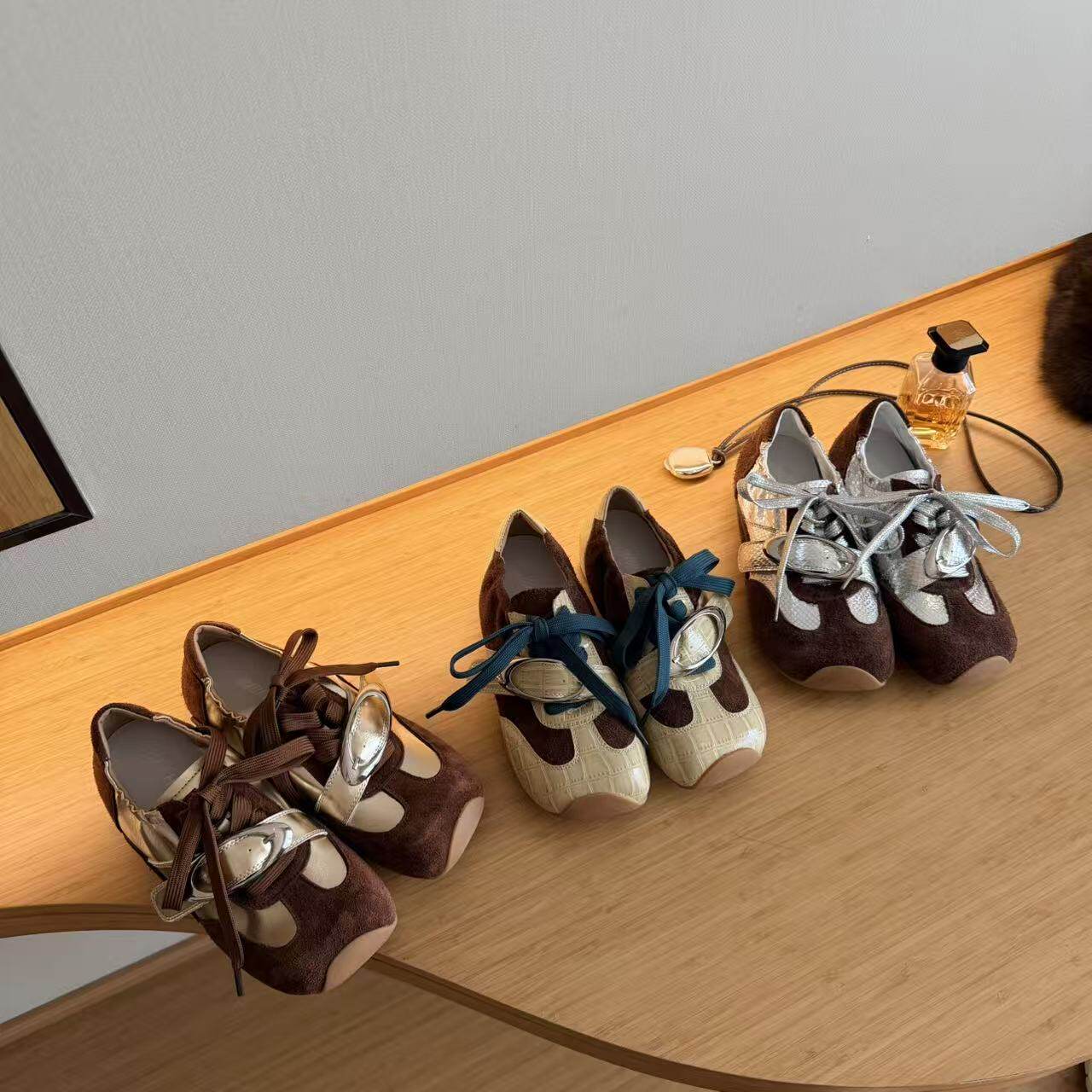 H55女鞋绮梦鎏金2026春季新款休闲复古风撞色日常百搭方头德训鞋
