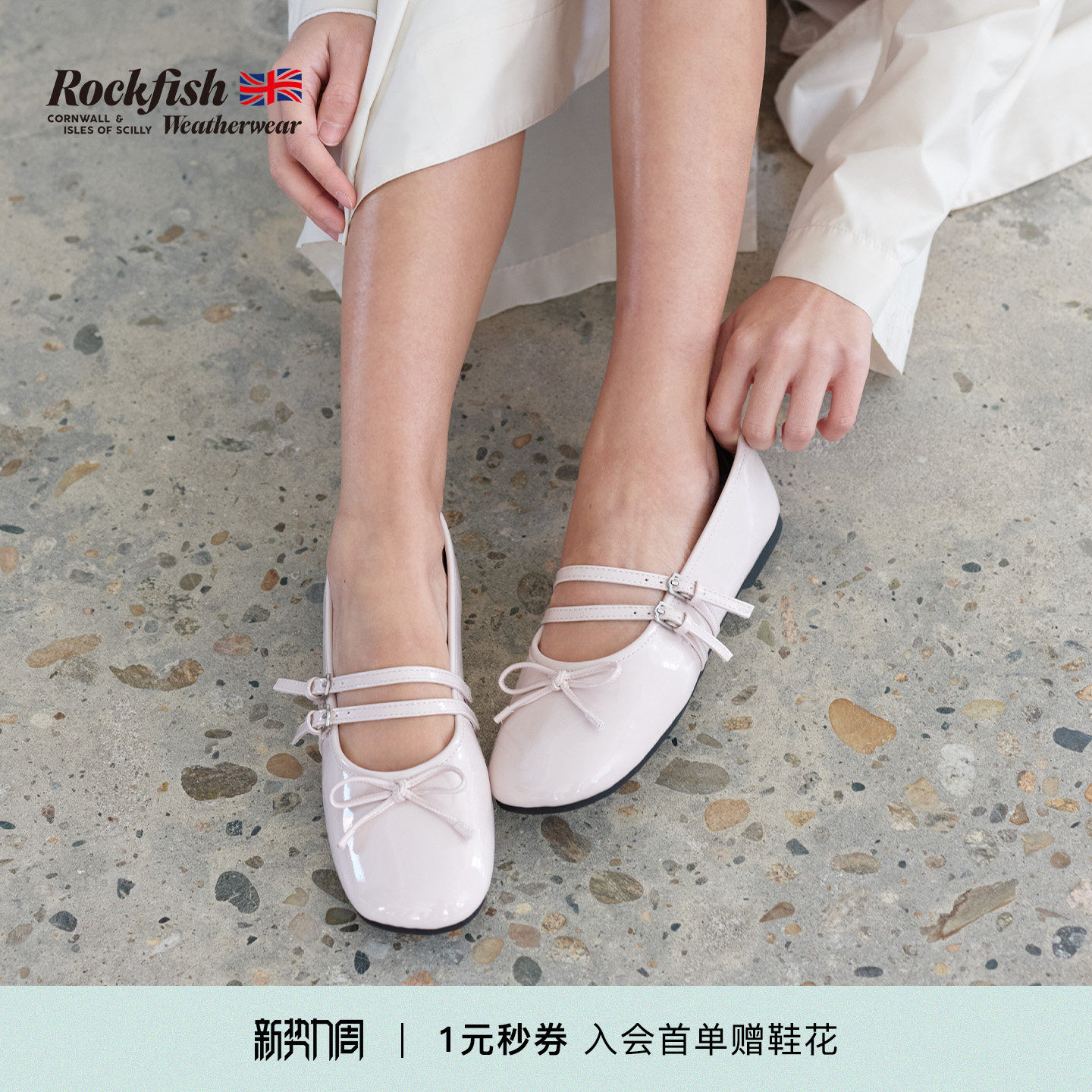 RockfishWeatherwear春季新品法式复古平底方头双带玛丽珍鞋女鞋