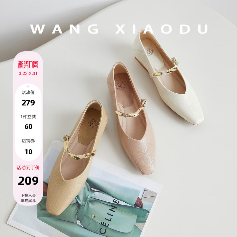 马皮方头交叉带弹力方头芭蕾手工复古低跟玛丽珍女鞋单鞋XD113013
