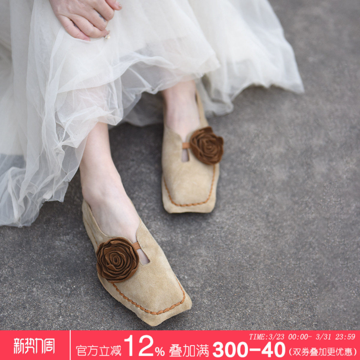 Artmu阿木原创复古小众花朵方头单鞋女平底手工女鞋2026春季新款