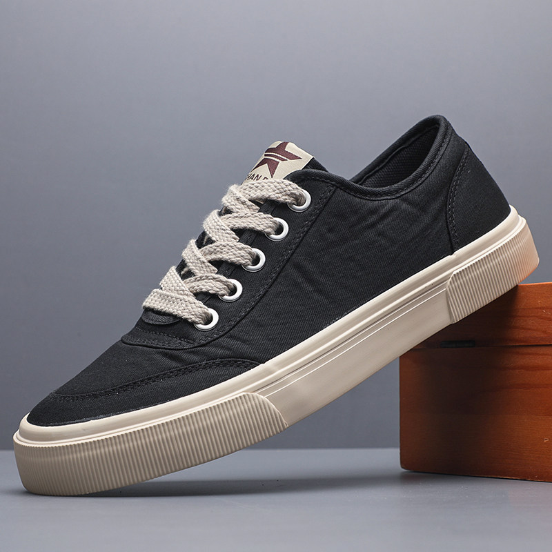 帆布鞋男新款春秋韩版透气低帮鞋子休闲百搭平底板鞋系带小白鞋男