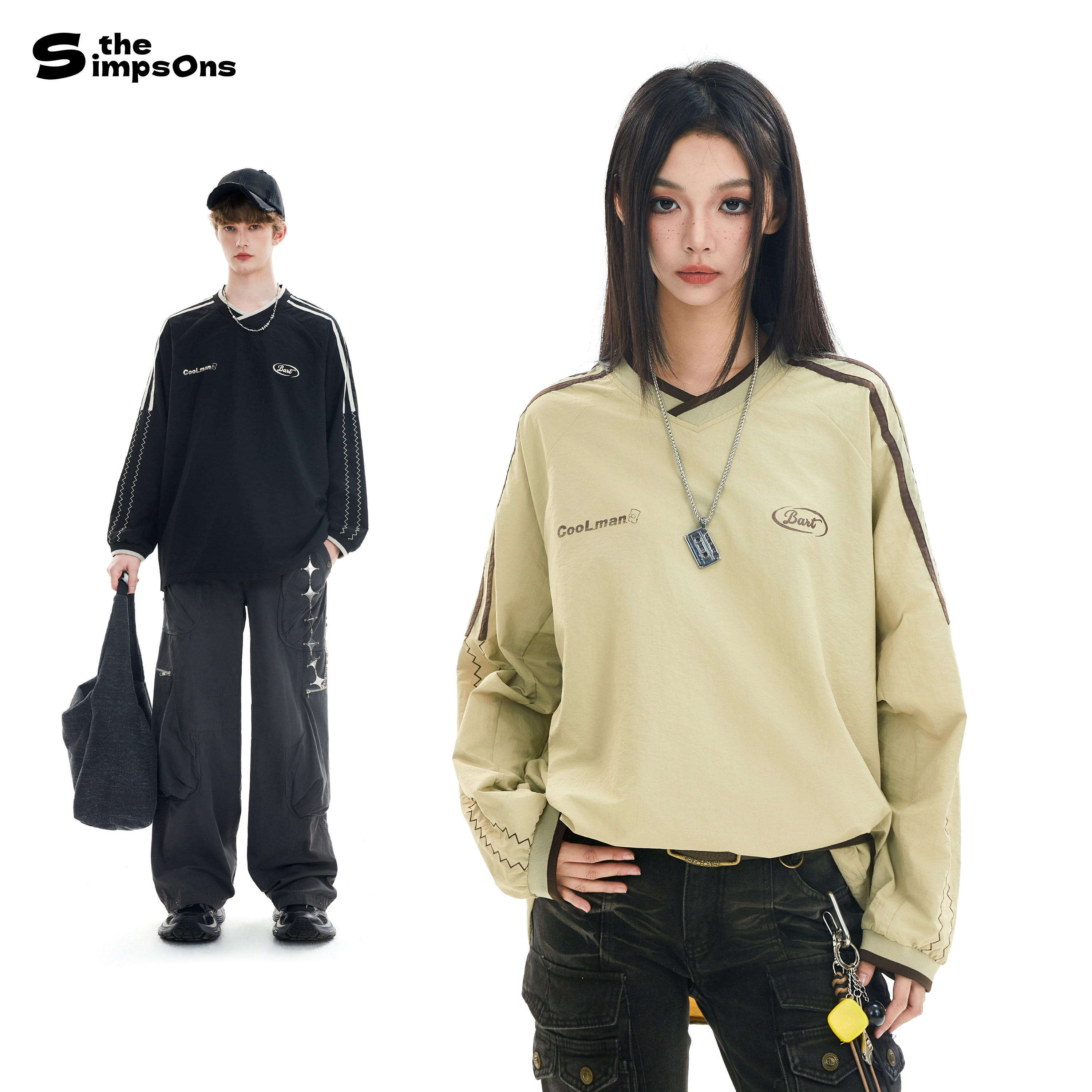 辛普森一家2026新款美式复古织带V领插肩袖情侣卫衣男女宽松上衣