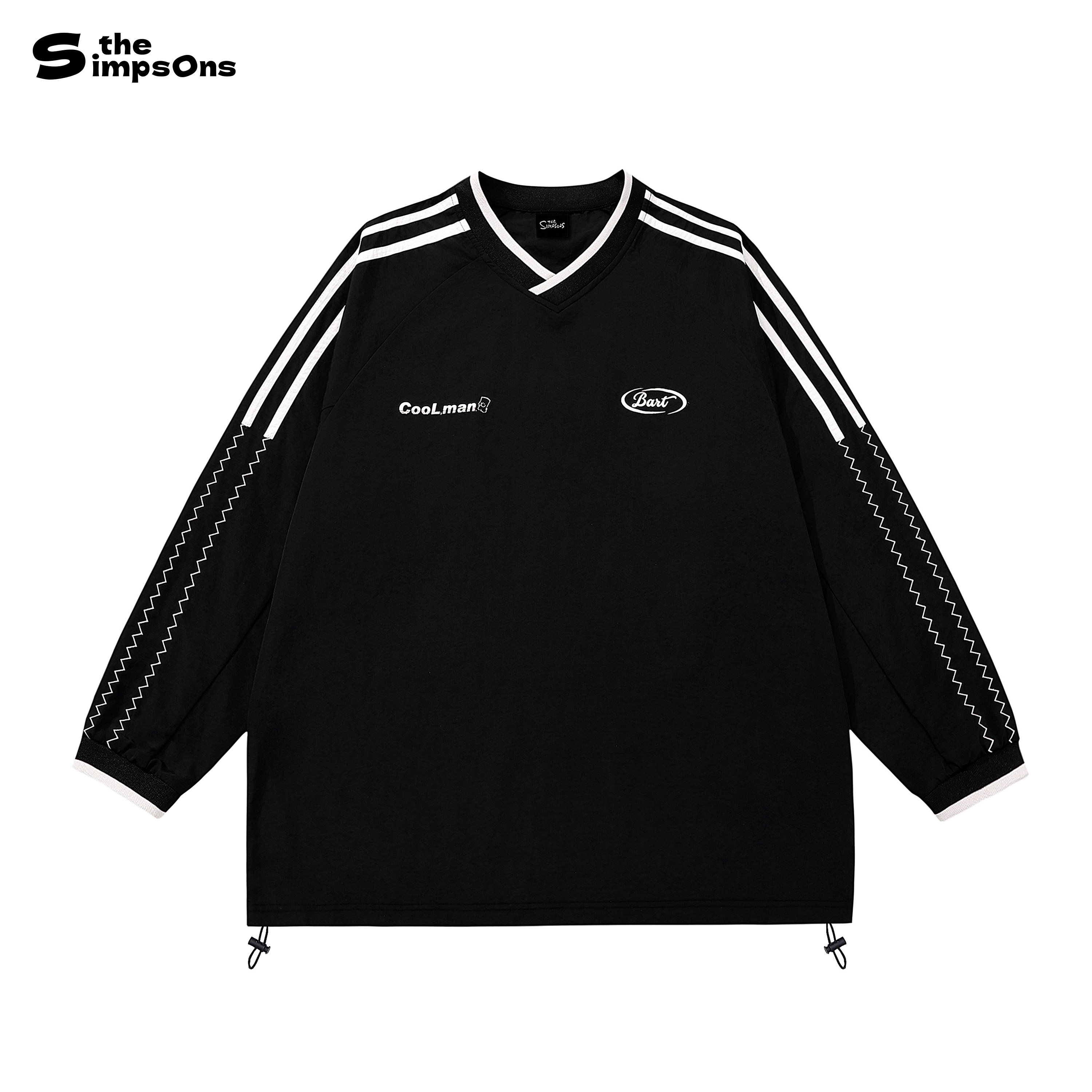 辛普森一家2025新款美式复古织带V领插肩袖卫衣秋潮牌运动长袖男