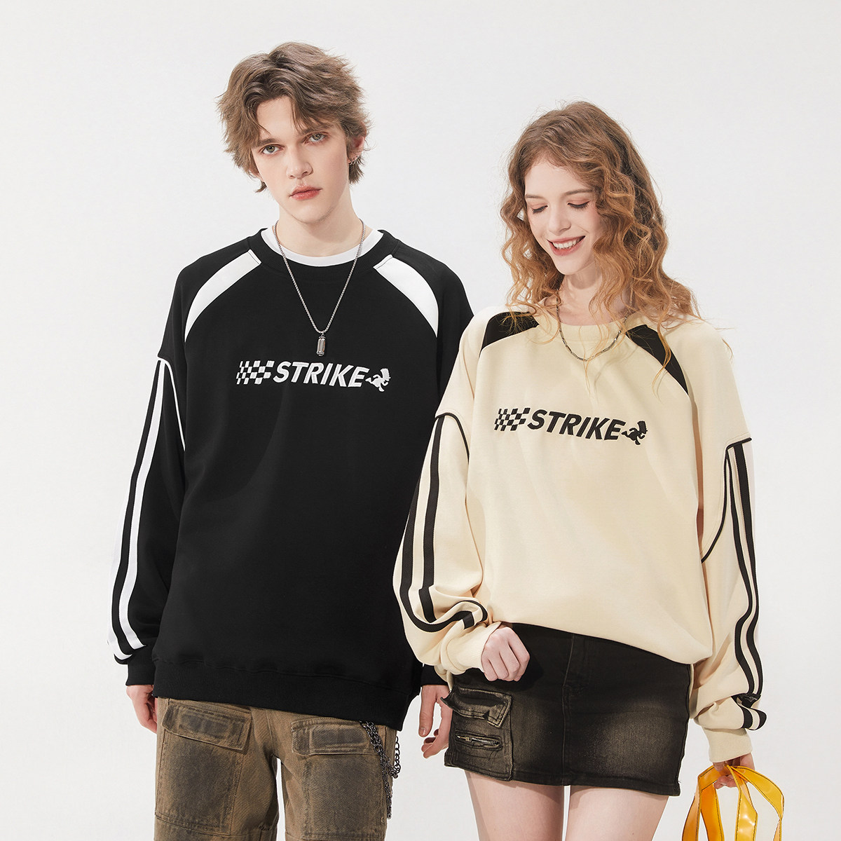 辛普森一家美式复古撞色卫衣男字母印花街头潮流多巴胺情侣上衣女