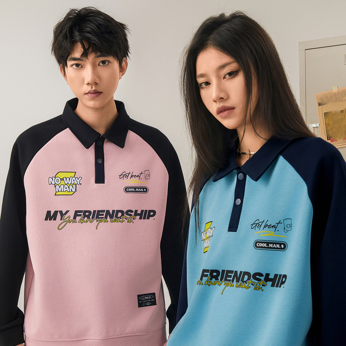辛普森一家潮牌POLO衫翻领情侣卫衣男字母印花学院风宽松休闲上衣