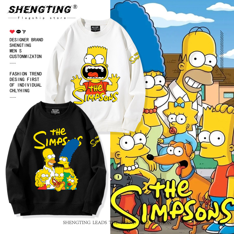 辛普森一家周边圆领卫衣男女2024秋冬新款加绒美式潮流百搭衣服