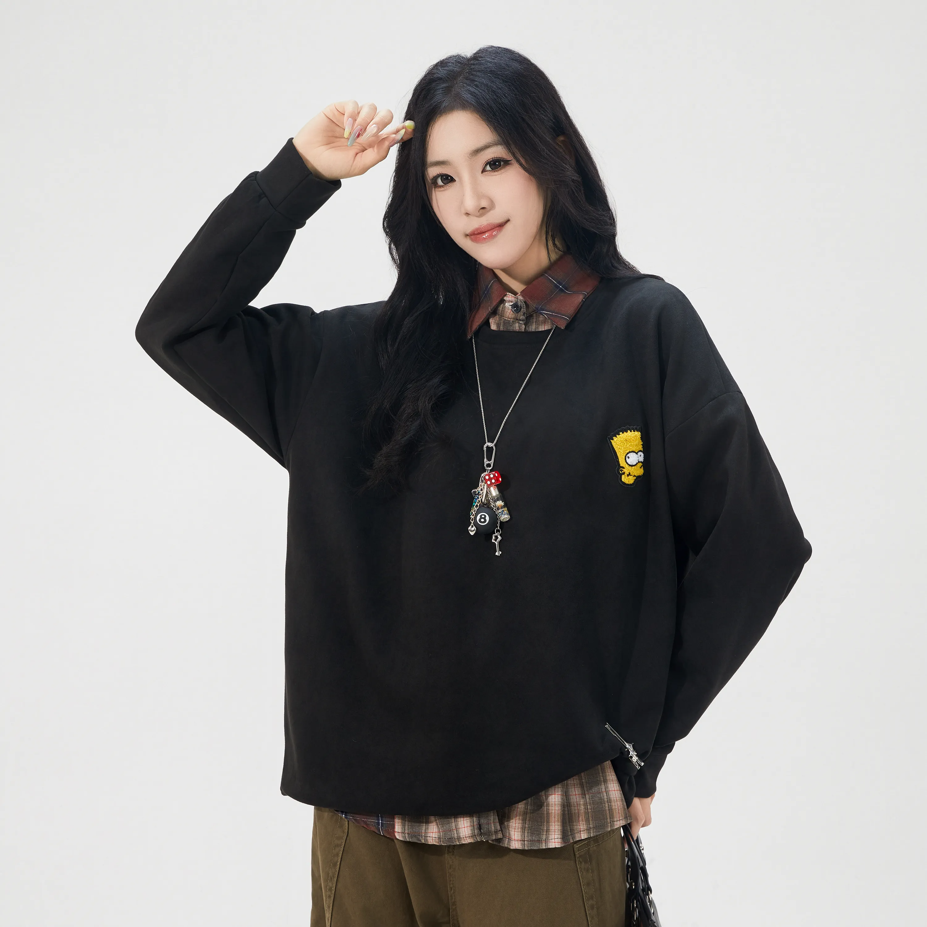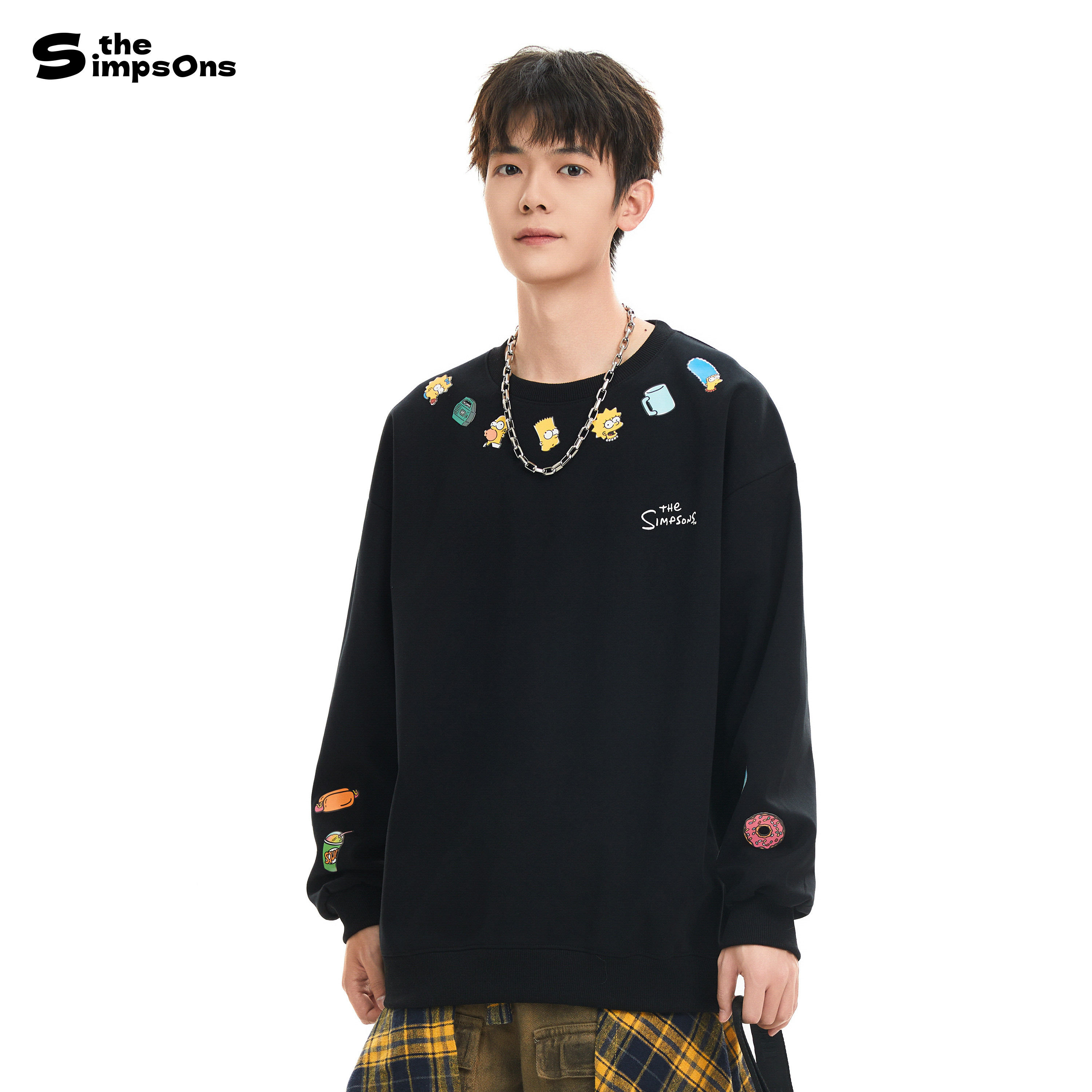 【DYG向鱼同款】辛普森一家重磅刺绣加厚圆领长袖上衣卡通卫衣男