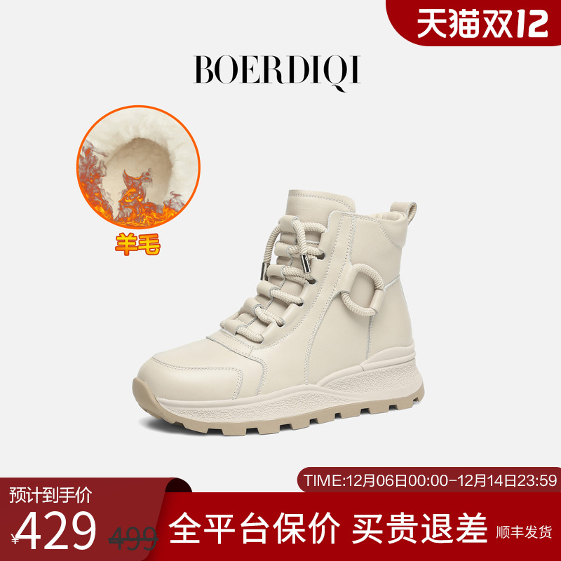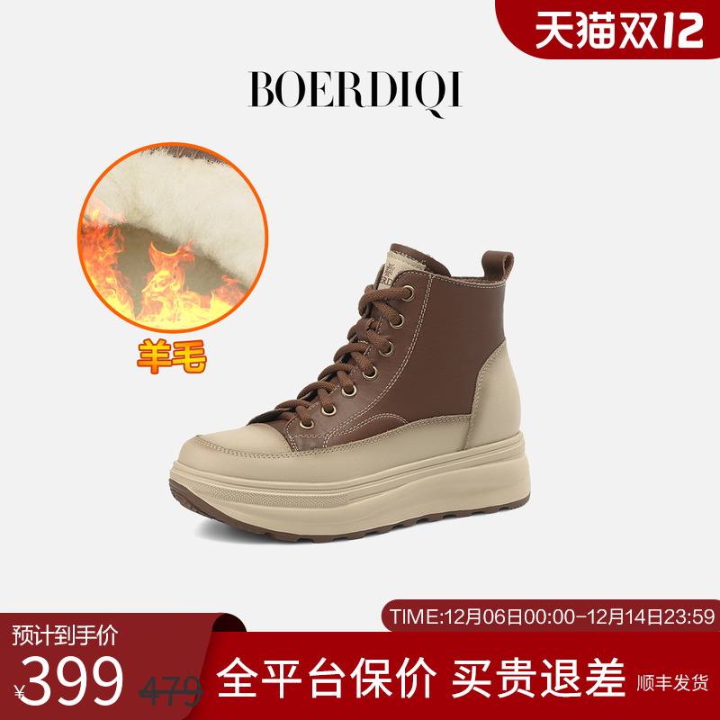 波尔谛奇加厚保暖羊毛时尚高帮雪地靴2025秋冬新款厚底增高休闲鞋