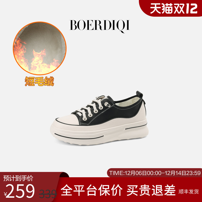 波尔谛奇高帮帆布鞋女2025秋冬新款加绒加厚休闲鞋厚底增高女鞋