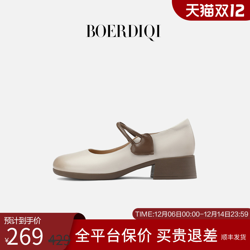 波尔谛奇真皮玛丽珍鞋女2025秋季新款小香风浅口单鞋温柔风小皮鞋