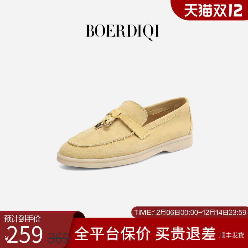 波尔谛奇高级牛反绒通勤一脚蹬乐福鞋女2025秋新款软底不累脚单鞋
