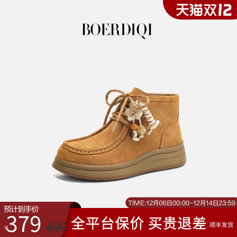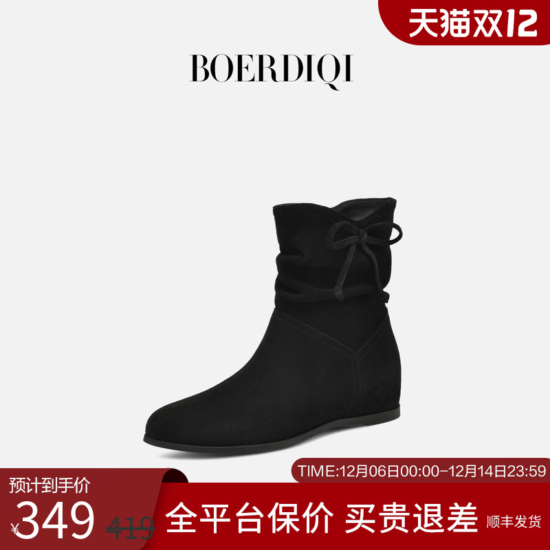 波尔谛奇内增高绒面堆堆靴女2025秋冬新款时装靴保暖加厚真皮短靴