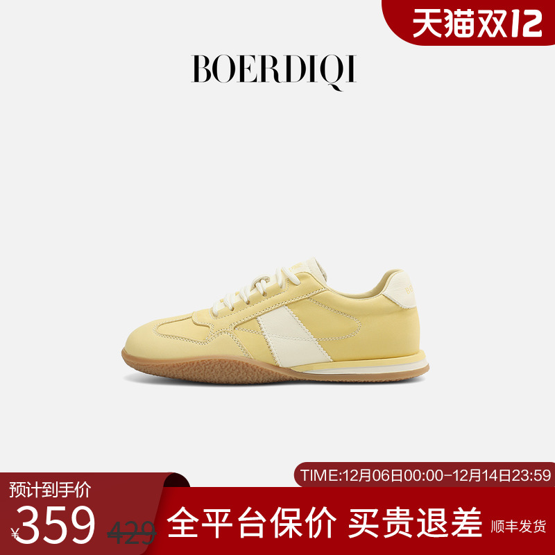 波尔谛奇黄色德训鞋女秋2025新款软底真皮透气阿甘鞋女运动休闲鞋