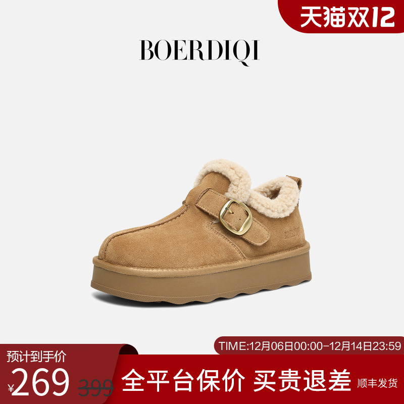 波尔谛奇加厚牛绒雪地靴女2025秋冬新款棉鞋保暖加绒厚底勃肯鞋子