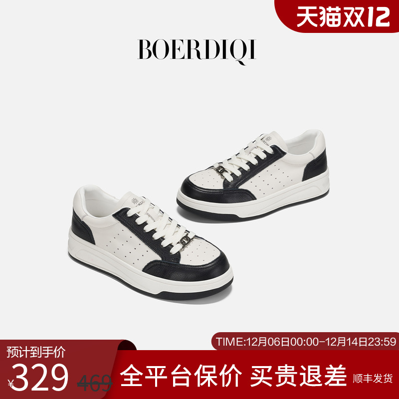 波尔谛奇经典真皮休闲板鞋女秋秋季2025新款厚底运动鞋百搭熊猫鞋