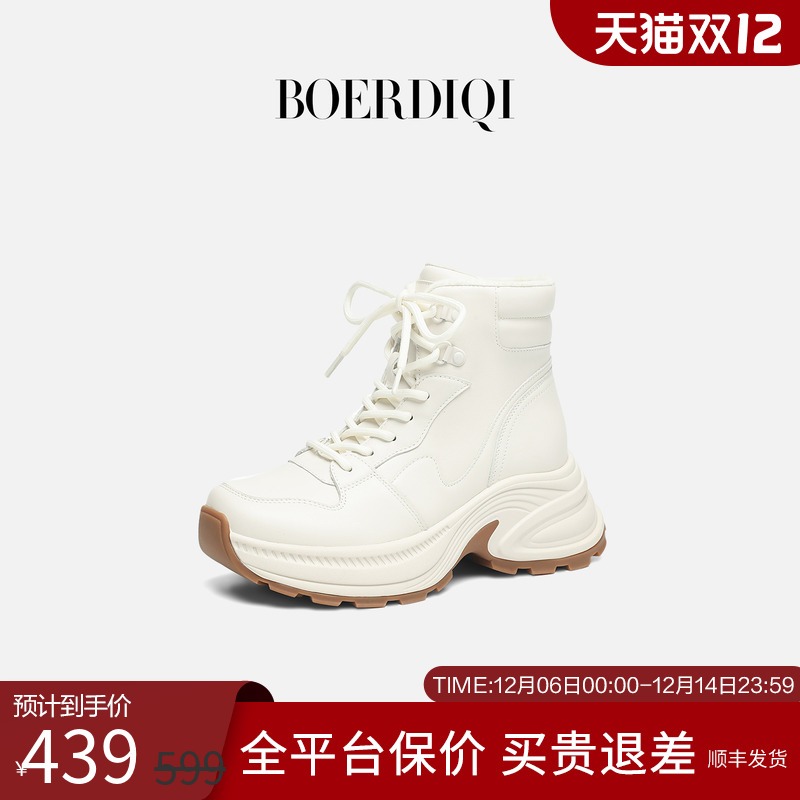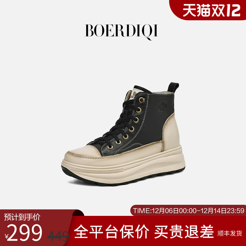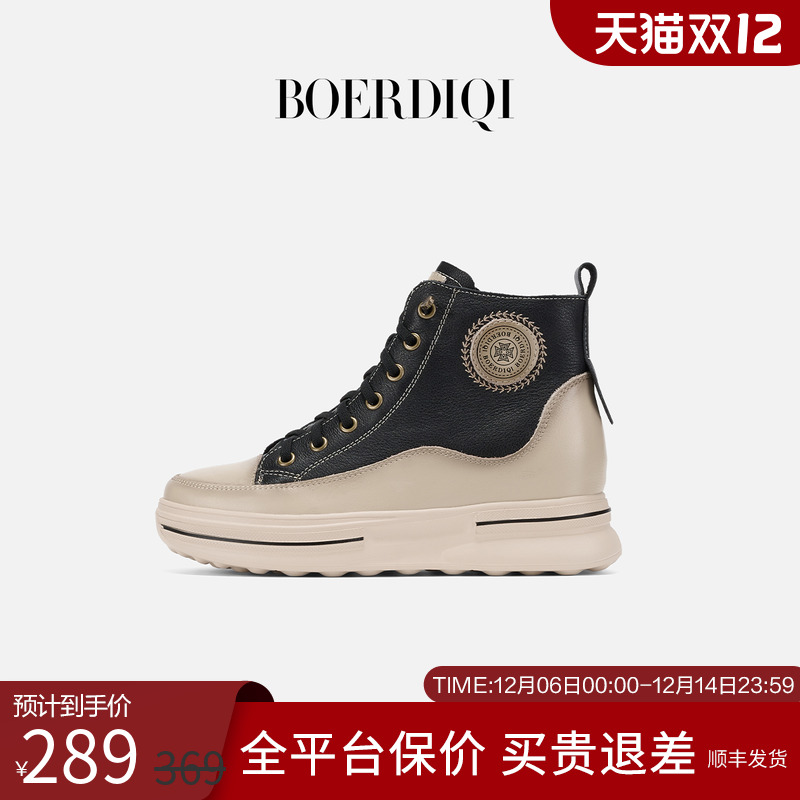 波尔谛奇【水上漂系列】真皮高帮鞋女2025新款百搭厚底增高休闲鞋