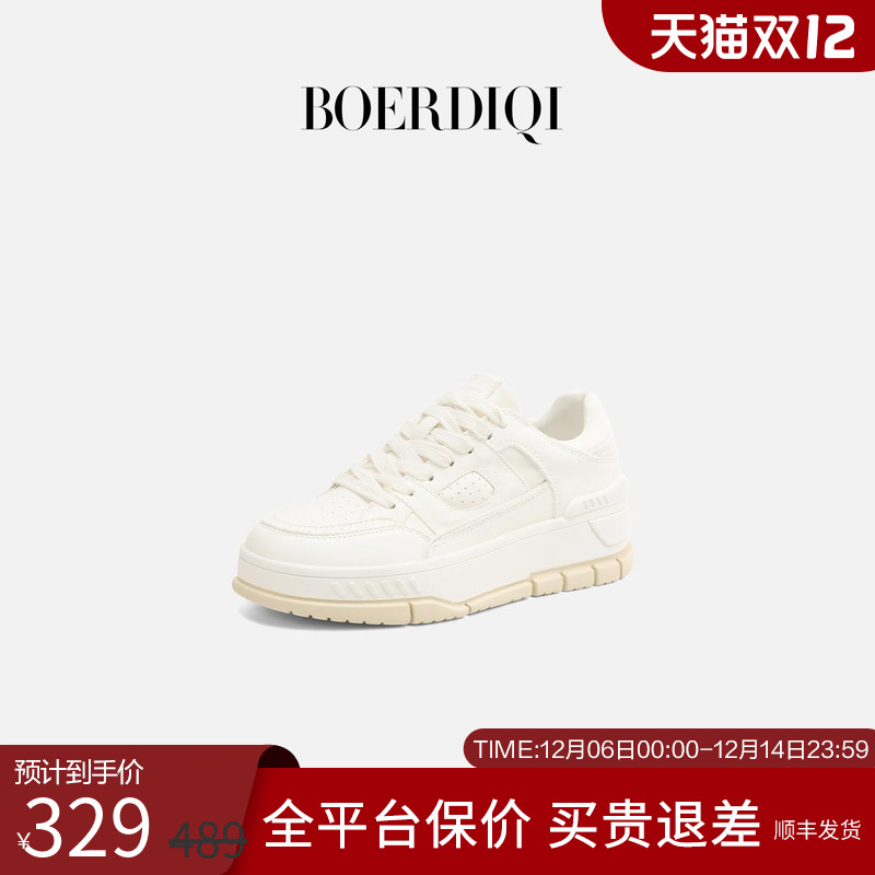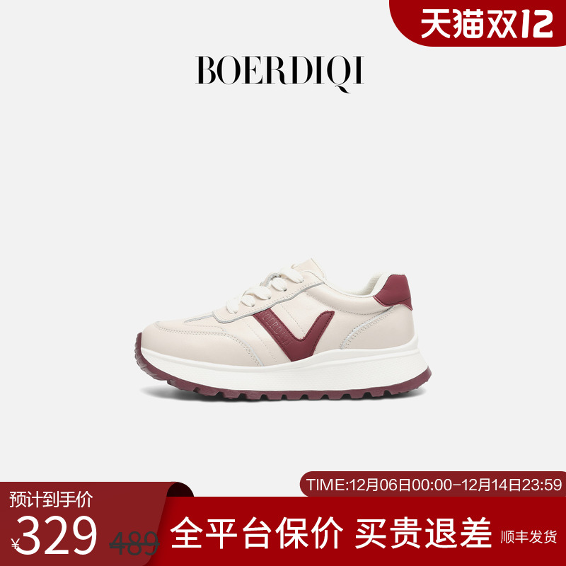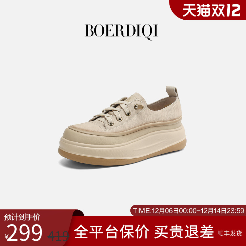 波尔谛奇轻便厚底休闲鞋女2025秋新款复古增高真皮板鞋时尚小白鞋