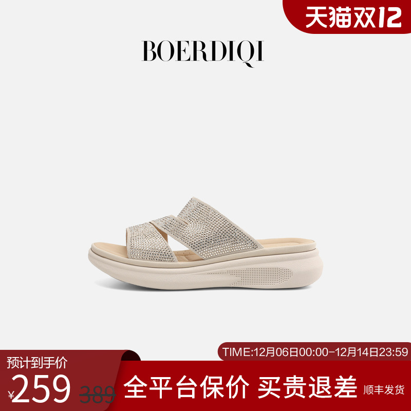 波尔谛奇闪钻凉拖鞋女外穿2025新款秋季百搭沙滩一字拖软底拖鞋