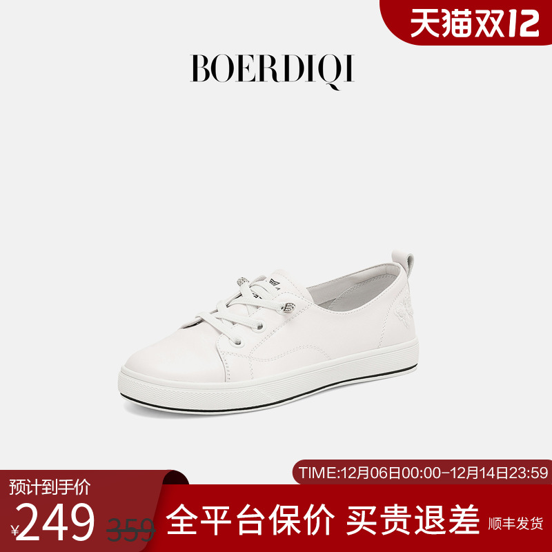 波尔谛奇真皮透气小白鞋软底浅口单鞋2025秋季一脚蹬免系带休闲鞋