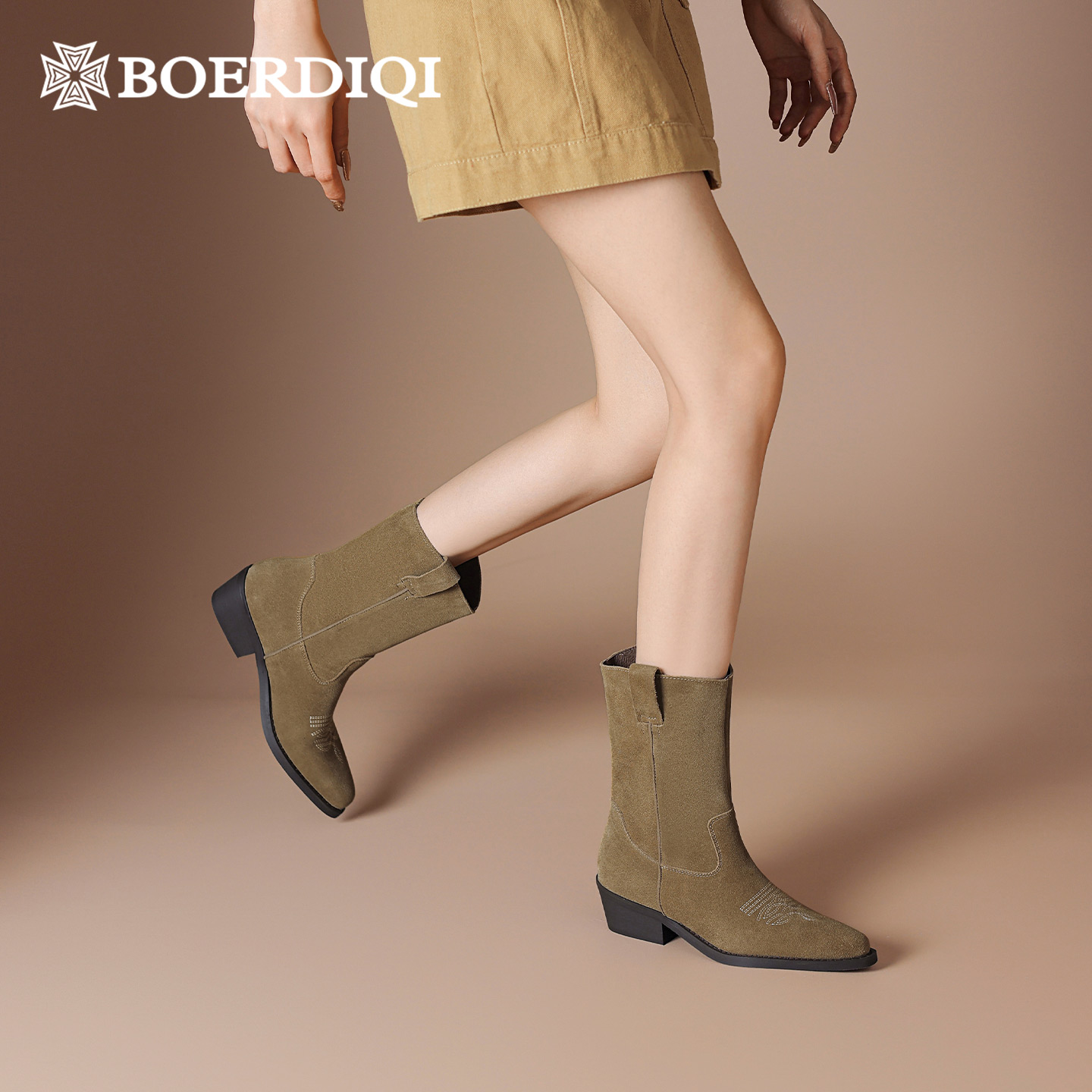 波尔谛奇波尔谛奇荒野物语刺绣西部靴女2025秋冬新款复古绒面短靴